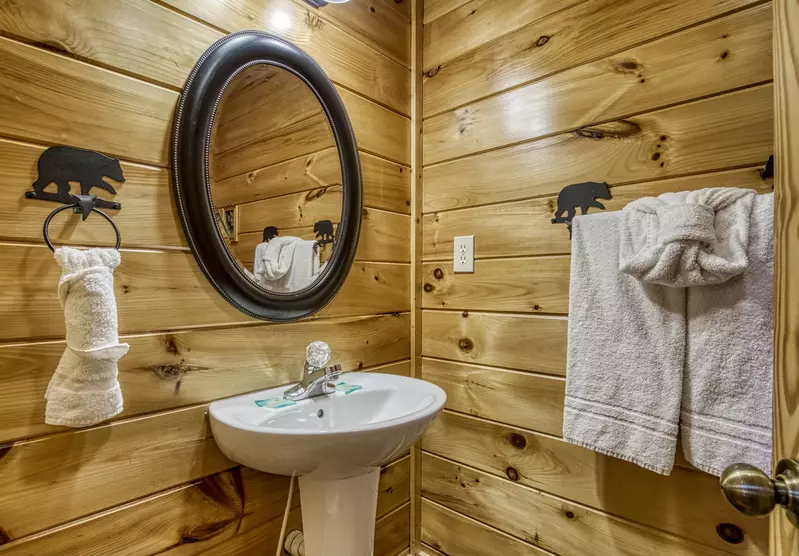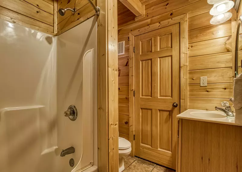 Outside, your private hot tub, complete with a privacy screen, offers tranquil wooded views for blissful unwinding. The deck features a porch swing and rocking chairs, along with a grill for outdoor cooking. As guests of the resort, you'll also have access to a refreshing community swimming pool, a delightful mini-golf course, and a clubhouse, perfect for some lighthearted fun. Located just a short drive from the numerous Great Smoky Mountain attractions, A Bear Creek Crib is truly the perfect romantic cabin for your unforgettable honeymoon or anniversary in Pigeon Forge.