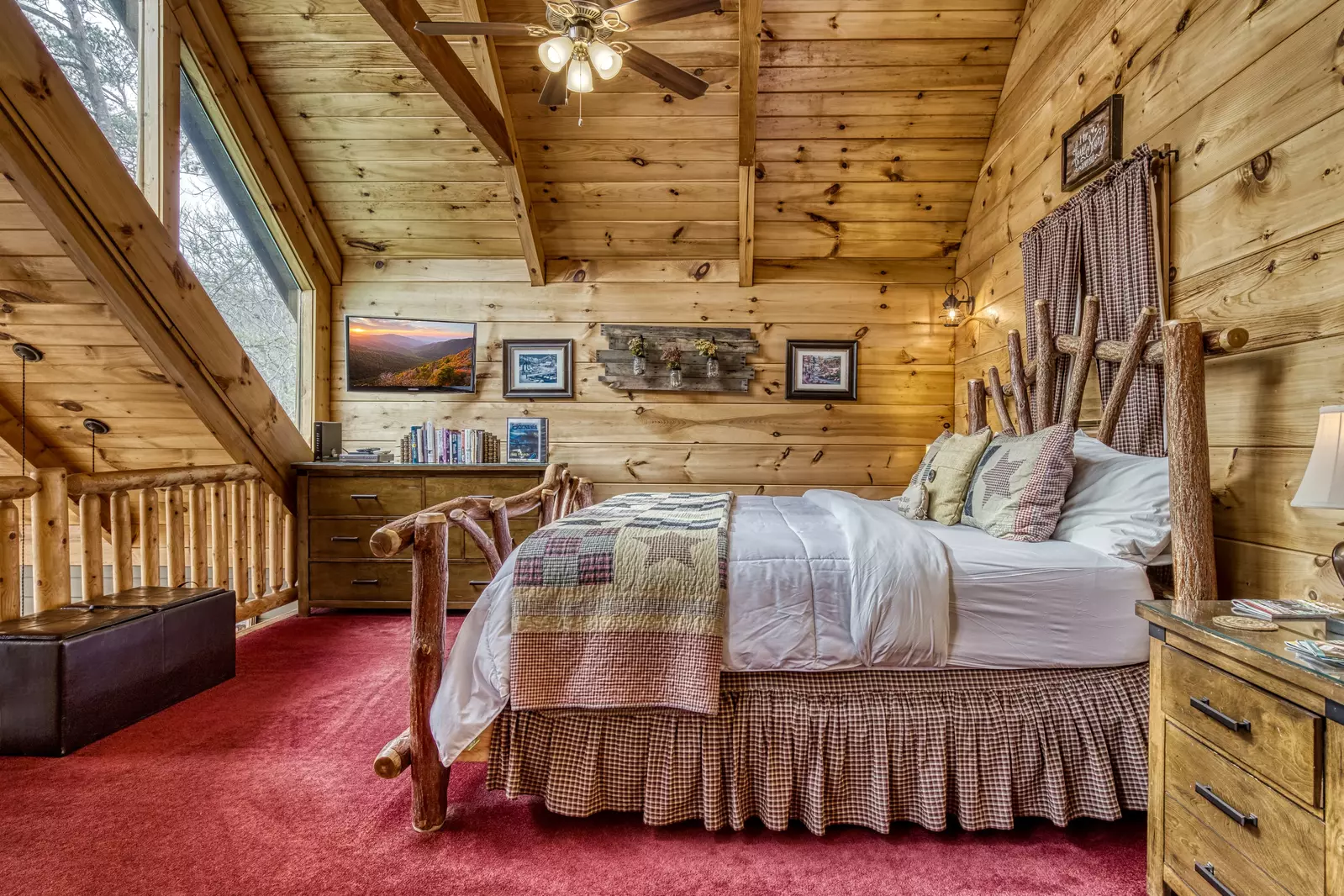 Wears Valley Secluded Cabin "A Walk in the Clouds" - Bedroom with vaulted ceilings
