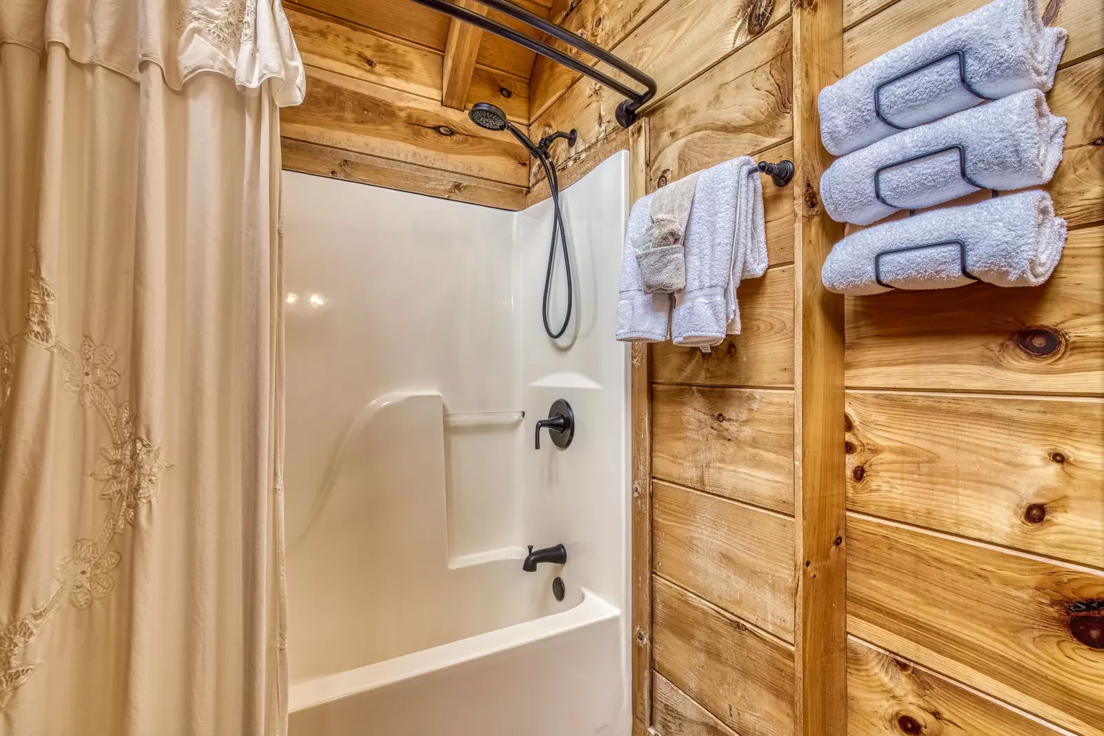Secluded Cabin in Pigeon Forge "A Walk in the Clouds" - Bathroom with tub/shower combo