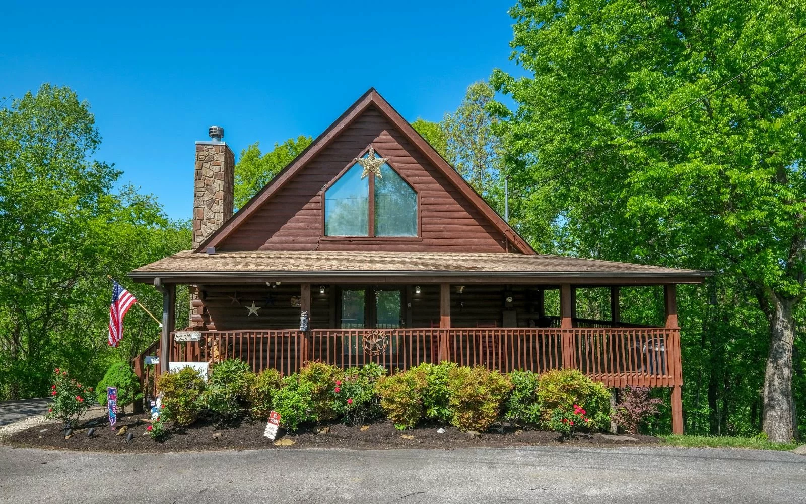Take the vacation of your dreams to the Great Smoky Mountains and stay at American Eagle. This two bedroom, two bathroom cabin is located in the Eagle Springs Resort in Pigeon Forge, Tennessee. Sleeping up to six guests, this one-story cabin rental offers plenty of space for you and your family on your vacation. With a lovely wooded view and beautiful interiors, American Eagle is a great Smoky Mountain escape for couples, families, and friends.