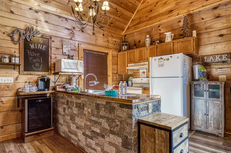 Pigeon Forge Cabin - Baby Bear Cabin - Fully furnished kitchen with wine fridge