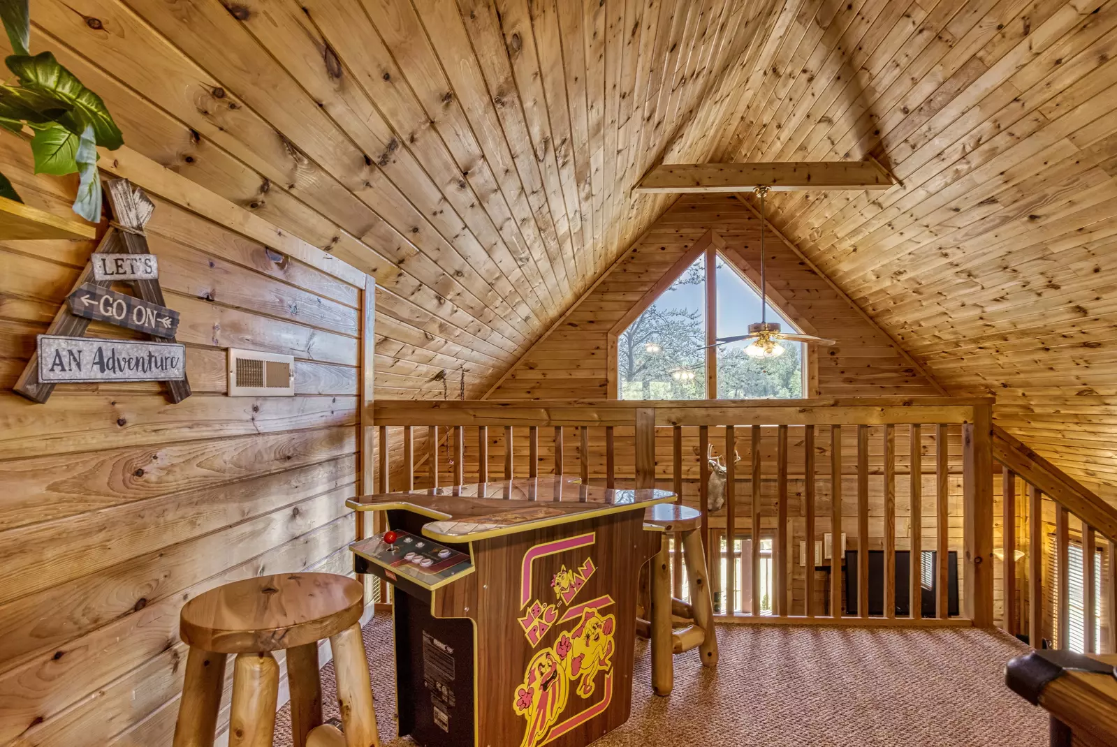 Log Cabin in Sevierville - Baby Bear Cabin - Upper level game room with cocktail style arcade machine