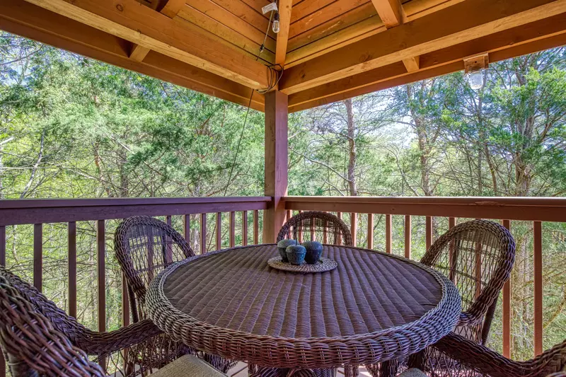 Vacation Rental in Pigeon Forge - Baby Bear Cabin - Covered wrap around deck with wicker table and chairs