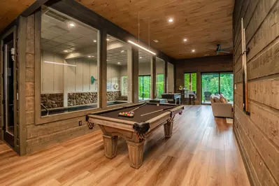 Welcome to Modern Mountain Majesty! Located in the prestigious Cedar Falls Resort is this 5,000 sqft, beautiful modern-rustic home with 3 master suite bedrooms plus loft bunk-bedroom, 4.5 bathrooms and sits on a private piece of land with partial mountain views. This 3-story spacious cabin offers every luxury and caters to the discerning traveler seeking a unique and luxurious vacation experience in The Great Smoky Mountains. The cabin offers a heated indoor pool, mountain views, seclusion, theater room, game room, hot tub, wifi throughout the cabin and is perfect for a small family or couples retreat.