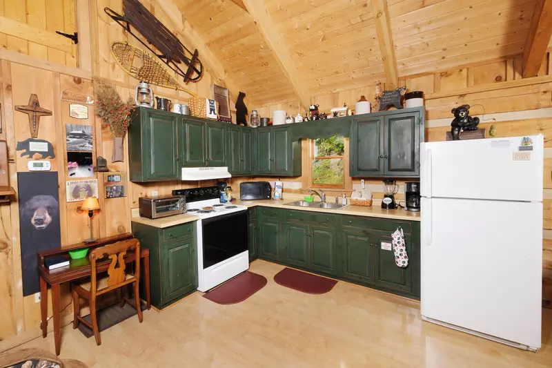 Tucked into the woods and with a luxurious hot tub, a firepit, a gazebo, and with its location being an easy drive to Dollywood and the Great Smoky Mountain National Park, Bear Nekkid could not be more perfect for a romantic getaway or a small family vacation! Bear Nekkid has the cutest touches throughout the house and yard, so make sure you take the time to discover all the treasures this precious log cabin has to offer. It truly is one of a kind and offers a wonderful Smoky Mountain vacation- you won’t want to leave!