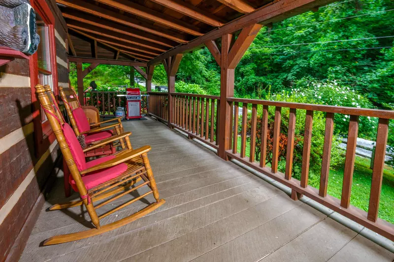-Wrap around deck with rocking chairs, gas grill, porch swing, and a hot tub!