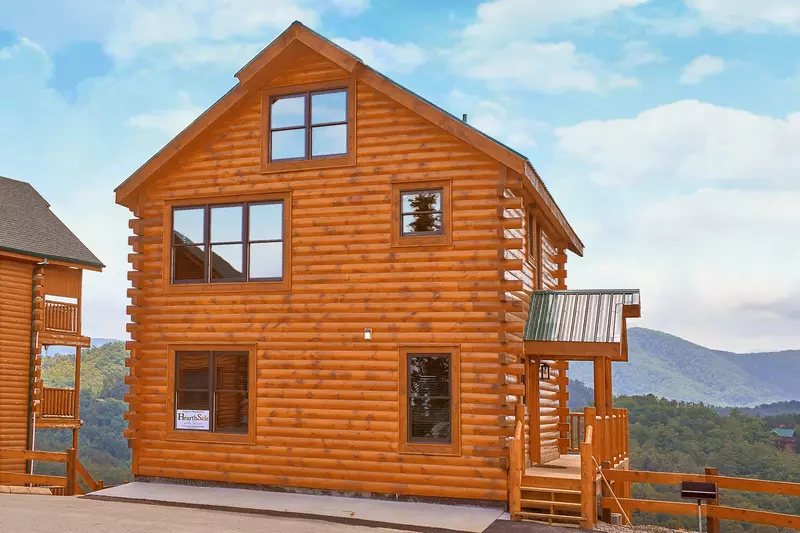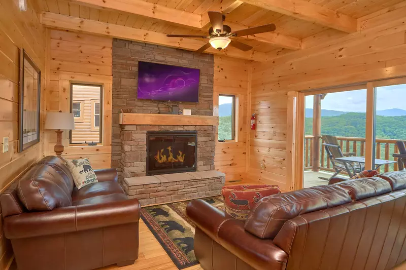 Bear With Me" is a spacious three-bedroom, plus loft, luxury cabin that sleeps up to 12 guests. Large, full-wall sliding glass doors on each floor provide for a spectacular panoramic view. This beautiful cabin features 3 private king sized bedrooms with ensuite bathrooms, a loft with 2 queen sized beds, one sleeper-sofa, and deck access from every floor.