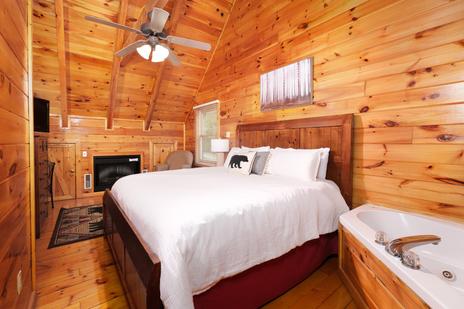 next to the flames. On the other side of the room is your private, in-room jetted tub. Soak your stress away while you watch the flat-screen TV and plan tomorrow’s fun in Pigeon Forge.