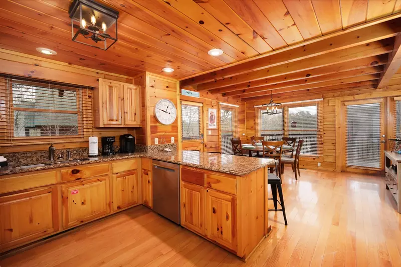 Bring your bathing suit and favorite pool float! Your stay at Beary Relaxing gives you access to the nearby community swimming pool. After a muddy hike or a day of ziplining, toss dirty duds into the full-sized washer for easy cleanup. The washer and dryer combo are neatly concealed near the kitchen.