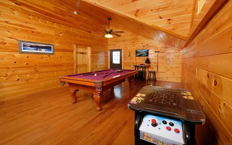 In between excursions, use cabin downtime to shoot some pool or play arcade games in the loft rec room, watch movies in the home theater with the large flatscreen TV, or take a swim in the lower level’s indoor pool! With downtown Pigeon Forge under 3 miles away, short trips into town for shopping in The Old Mill District, eating at the numerous savory dining stops, and playing The Escape Game at The Island are all convenient and hassle-free drives! Park the car and hop on the Pigeon Forge Trolley all the way to the Gatlinburg Visitors Center and all the other important stops along the Parkway between the two cities before heading home to watch the beautiful colors of dusk fade over the mountaintops from your rocking chair. All the best of Smoky Mountain fun, amusements, and relaxation await your next Pigeon Forge vacation with Cabin for YOU’s Beaver’s Mountaintop Retreat.