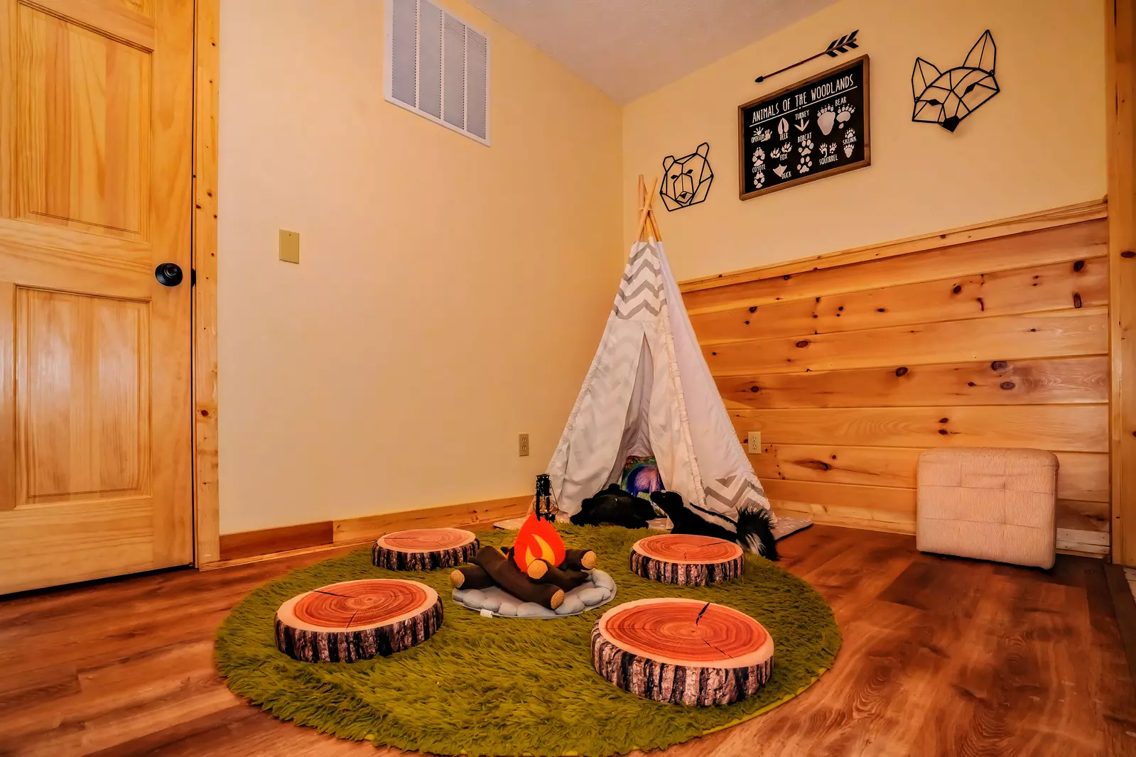 Step down into the lower level where there is something for everyone and the fun is just beginning. The lower level offers a home theater room complete with WiiU gaming system and a sleeper sofa. Challenge your high score on the arcade machine or play against your friends on the air hockey table. There is even a canvas teepee tent for kids for that 1st “camping experience”.