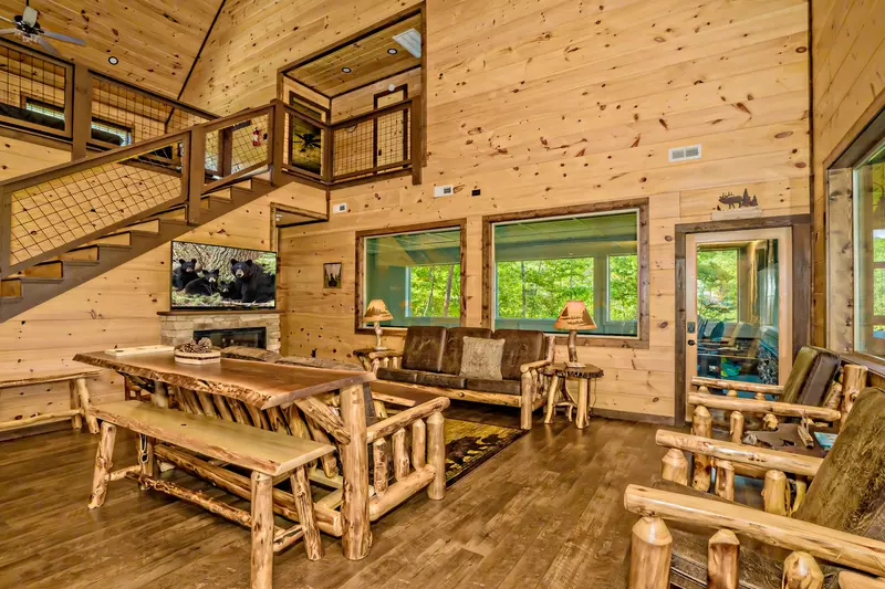 Grab a float and relax in the indoor pool in the comfort of their very own cabin in the Smokies! There is a half bath located in the pool room for your convenience.