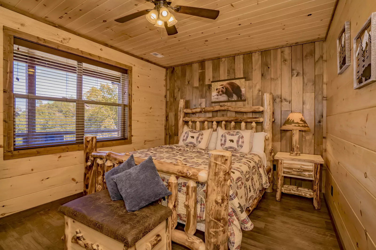 The spacious living area features rustic-style seating just waiting for you to get comfortable, fire up the electric fireplace and catch up with friends and family or watch your favorite TV show on the big screen HDTV! The beautiful kitchen is sure to be a delight for the chef in the family! The kitchen is fully equipped and offers granite countertops, stainless steel appliances and seating for 14 guests.