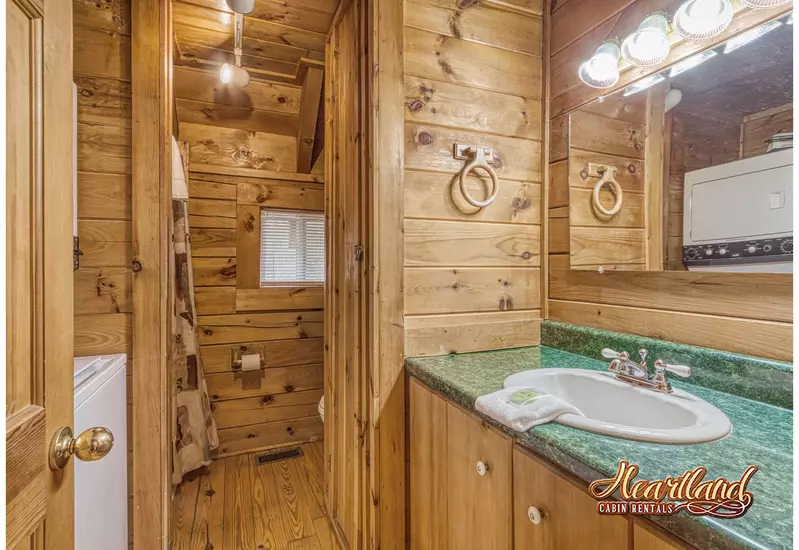 To make it even more romantic, there is a heart shape Jacuzzi inside the cabin, so, make sure you save a night, or several nights, to enjoy. The bathroom is the perfect size, and it’s completely equipped with all necessary amenities. The kitchen is completely equipped with everything you’ll need to cook the most delicious meals and enjoy a candlelight dinner at the dining table that serves for two, or a late breakfast in bed. It includes a stove with oven, dishwasher, microwave, refrigerator, coffee maker, all the kitchenware and tableware. We like to pamper our guests so they only have to worry about enjoying, that’s why we also include paper towels, dish liquid, dish washing pods. The cabin is so amazingly equipped, that is also has a laundry room with washer and dryer for your convenience. And, if you are the type that can’t live without WIFI, this will also be available throughout your stay, so you can post photos of this amazing place and the lovely time you are having, in your social networks. internet, and a full kitchen.