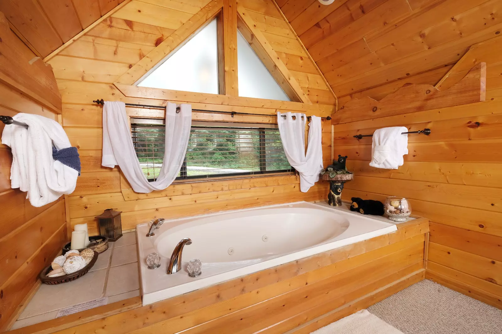 -Lofted king size bedroom with jacuzzi tub and TV that plays DVDs only (bring your favorite movies)