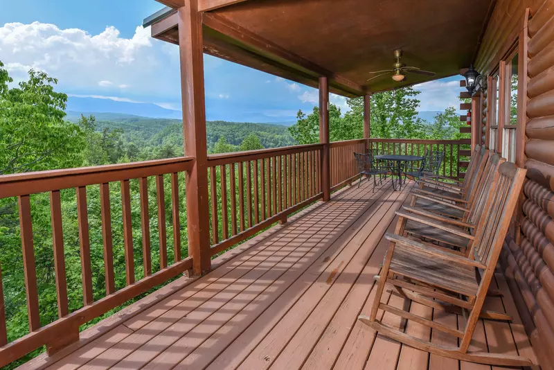 The bedroom has access to a private deck offering a rocker and love seat and an awesome mountain view.