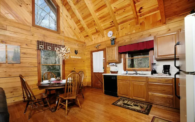 Hiding Place is packed with more amenities, including a washer/dryer, TVs in the bedrooms, an indoor jetted tub, a charcoal grill for cookouts, board games for rainy days, and a fully equipped kitchen where you can create great in-cabin meals.