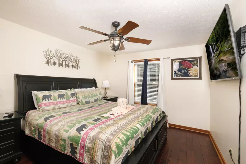 The 3nd bedroom on this level features a king bed and HDTV.