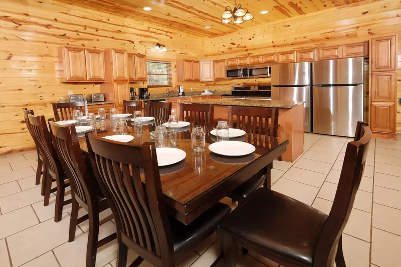 Welcome to Keaton's Kabin! Nestled in the heart of Pigeon Forge, Keaton’s Kabin is a luxurious 4400+ square foot, five-bedroom, five-bathroom mountain retreat that blends comfort, elegance, and entertainment under one roof. Designed to accommodate up to 16 guests—and even your four-legged family members—this cabin features a private indoor swimming pool, a dedicated game room, an in-home movie theater, 2 hot tubs, wifi, parking for 4 vehicles and a ramp for easy access into the cabin.
