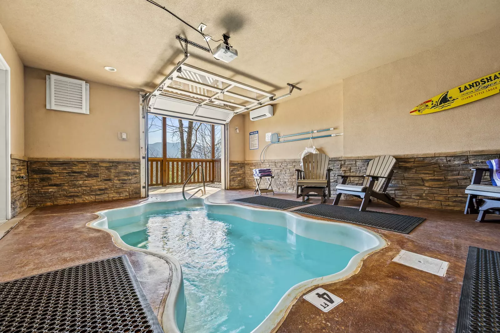 Indoor Heated Pool with Theater Screen (garage door opens to the outside)