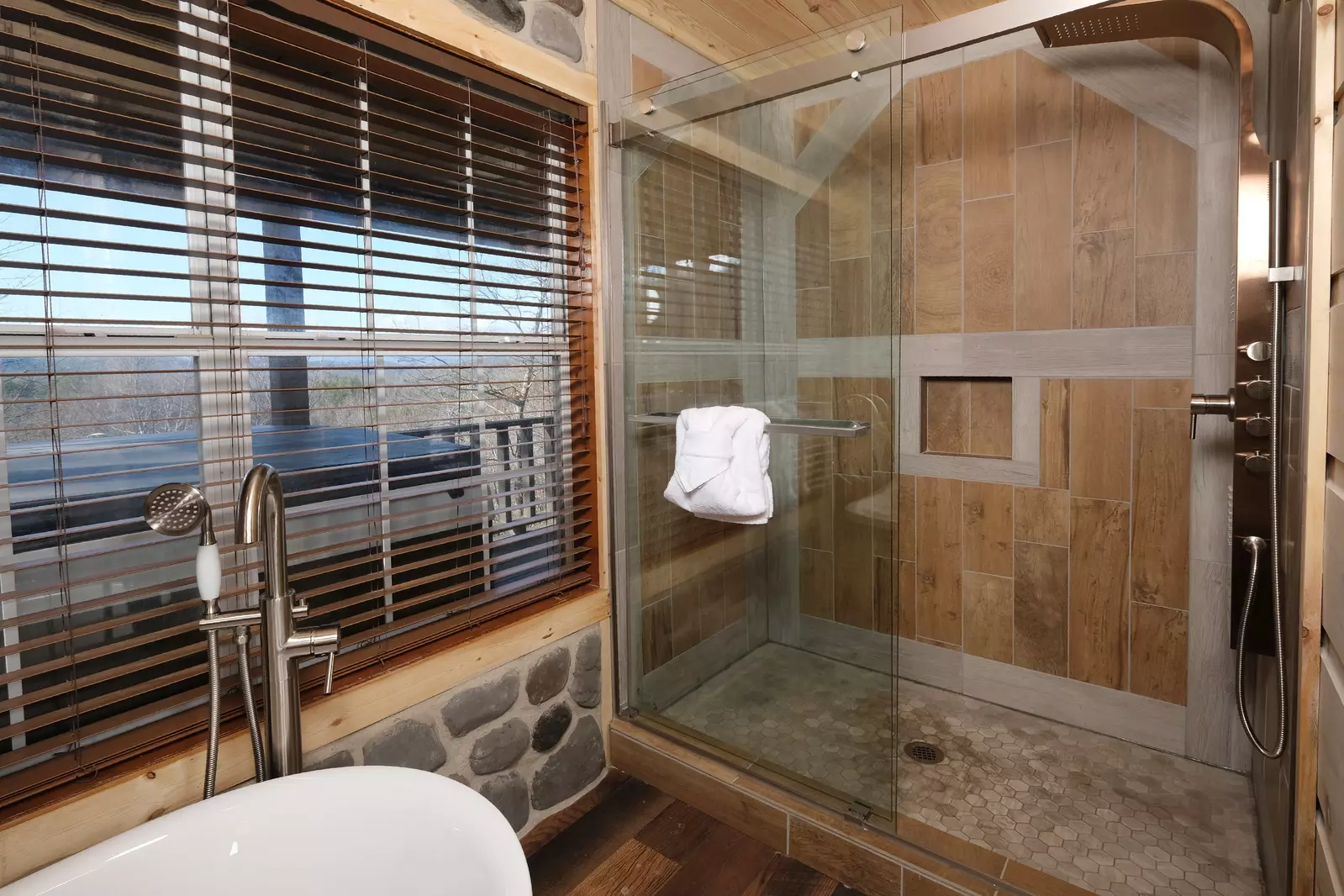 Gatlinburg Secluded Cabin "The Hidden End" - Bathroom two with walk in spa shower