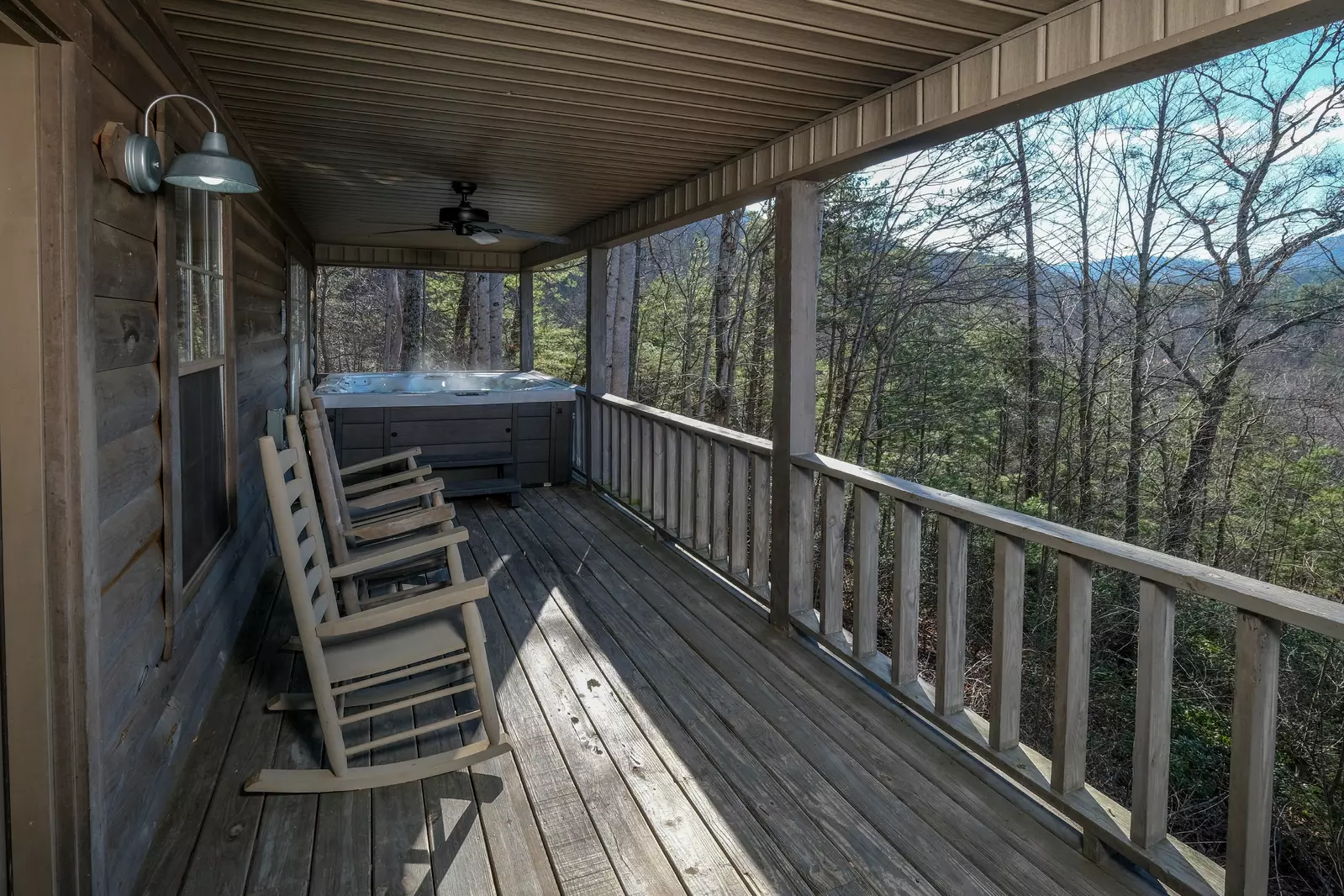 Pet Friendly Cabin in Gatlinburg "The Hidden End" - Covered back deck with rocking chairs