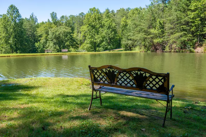Gatlinburg Cabin Resort “Caney Creek Mountain Area” – Bench next to the community fishing pond