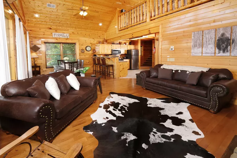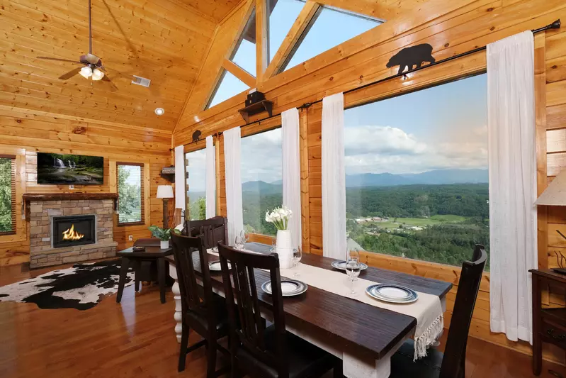 Roofed, shady decks call you to come outside and sit a spell. While away the hours in a rocking chair with a glass of cold moonshine. Slip into the bubbling hot tub after a busy day of ziplines, mountain coasters or Dollywood.