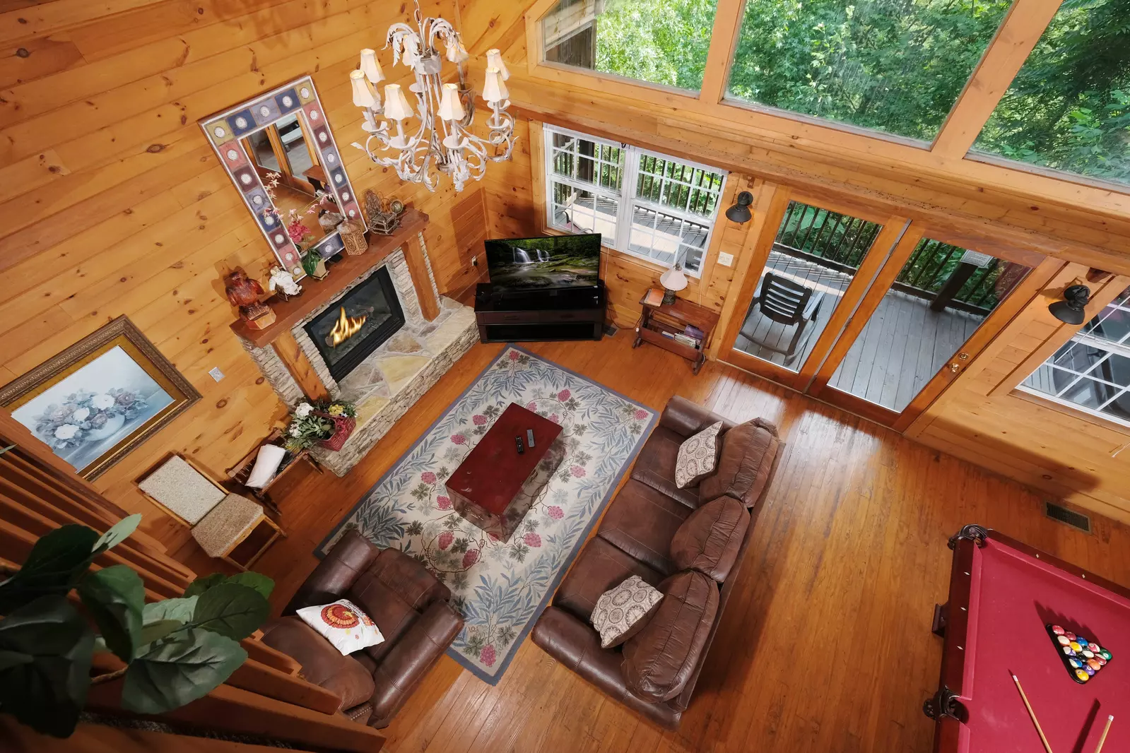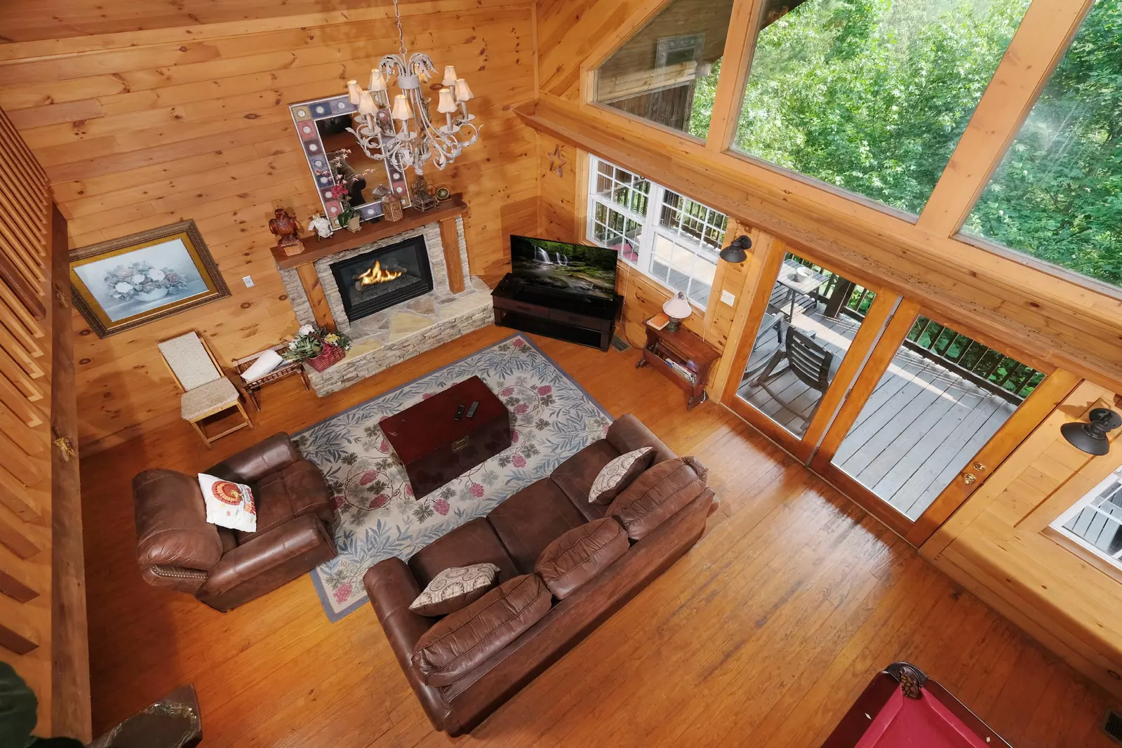 After you drive past a crystal-clear lake (which is within strolling distance for later!), you’ll come to this spectacular cabin that will make you feel like you’re living in an enchanted forest!