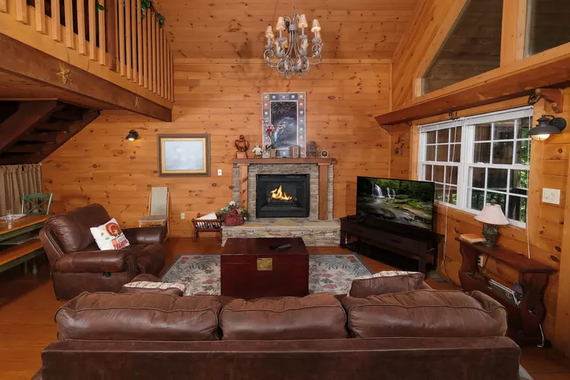 Once Upon a Time is a stunning one-bedroom, 1.5-bathroom Gatlinburg cabin providing amazing views and tranquil solitude, offering an open floor plan of the living room, kitchen, and dining area perfect for spending quality time together, and a cozy bedroom that provides a romantic retreat, while accommodating up to five guests for couples or small family vacation.