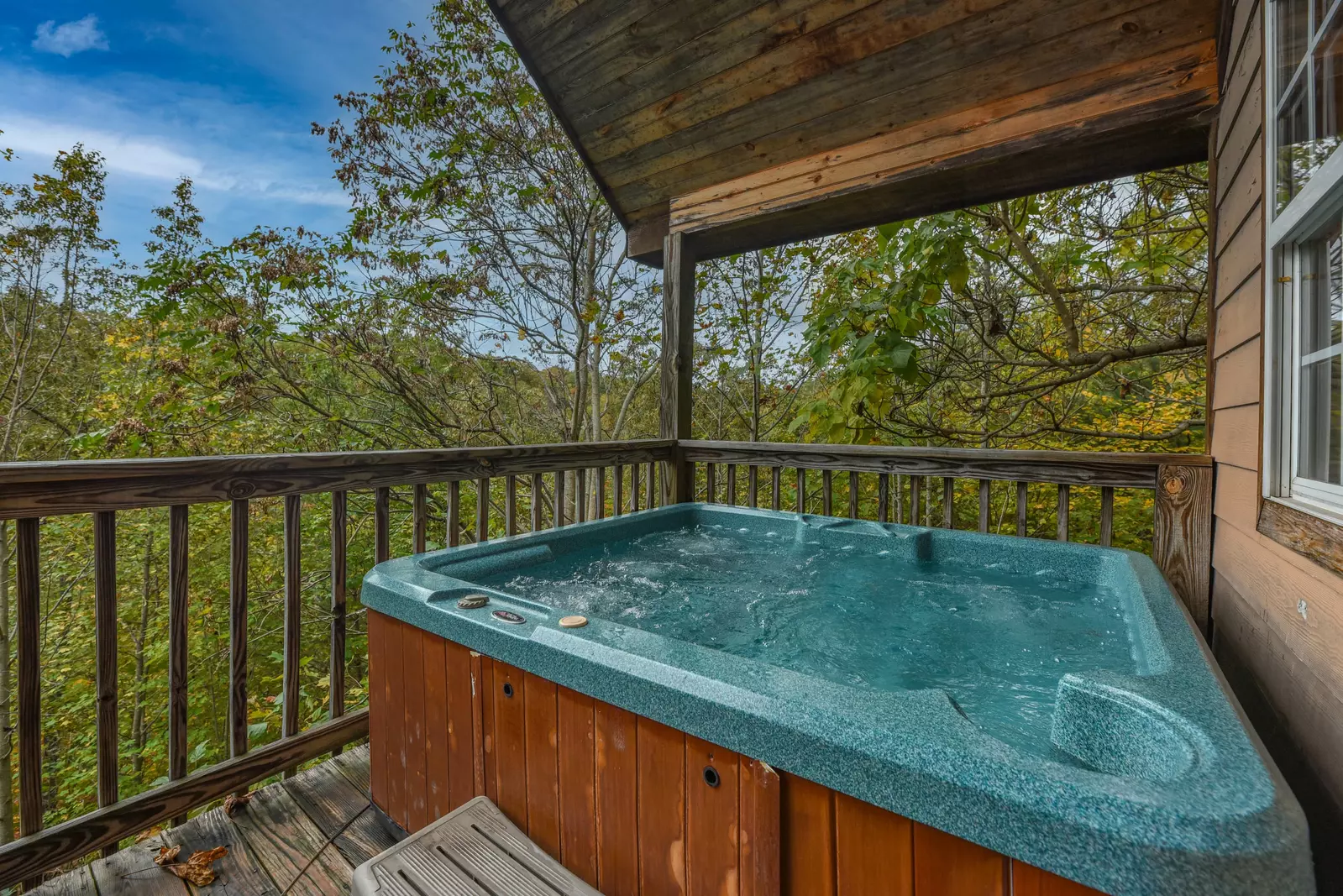 Once Upon a Time is surrounded by lush foliage and offers plenty of outdoor spots to enjoy, including a hot tub!