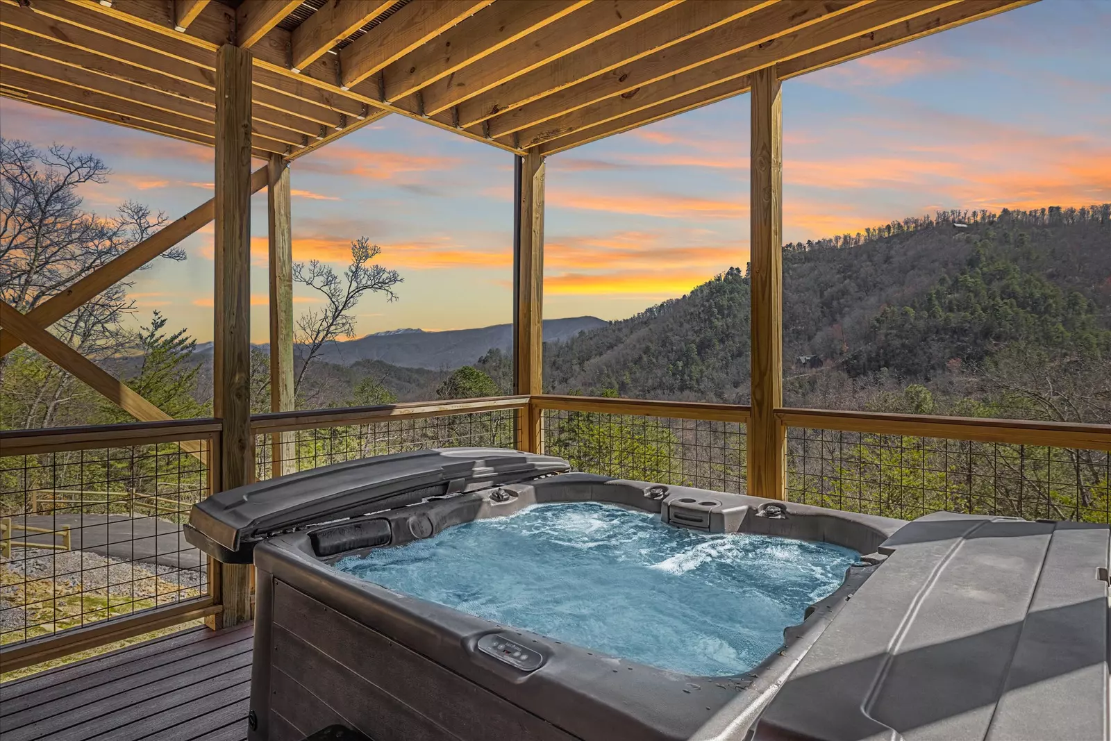 Step out onto the massive lower-level deck where you will be able to gaze at the stars and endless views. This deck features a five-person hot tub and seating areas to relax – perfect after a day of hiking or shopping at the nearby attractions such as The Island.