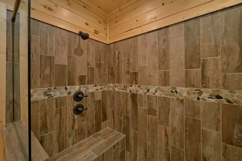 The cabin features 2 king suites each with fireplace, flat screen TV and ensuite full bath with walk in shower.