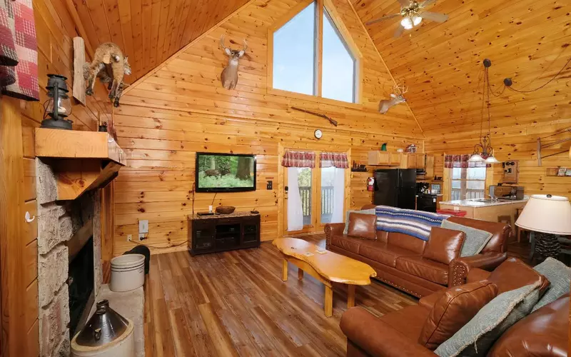 The big screen television in the living area is equipped with a DVD player, so bring a few of the kid’s favorite movies for an entertaining evening in. Kick back and relax on the comfortable sofas, turn on the gas fireplace and relax in your Pigeon Forge cabin.