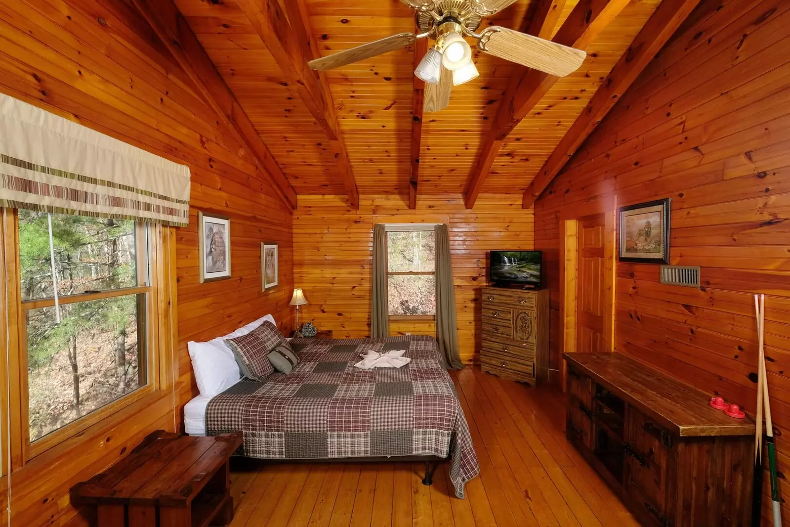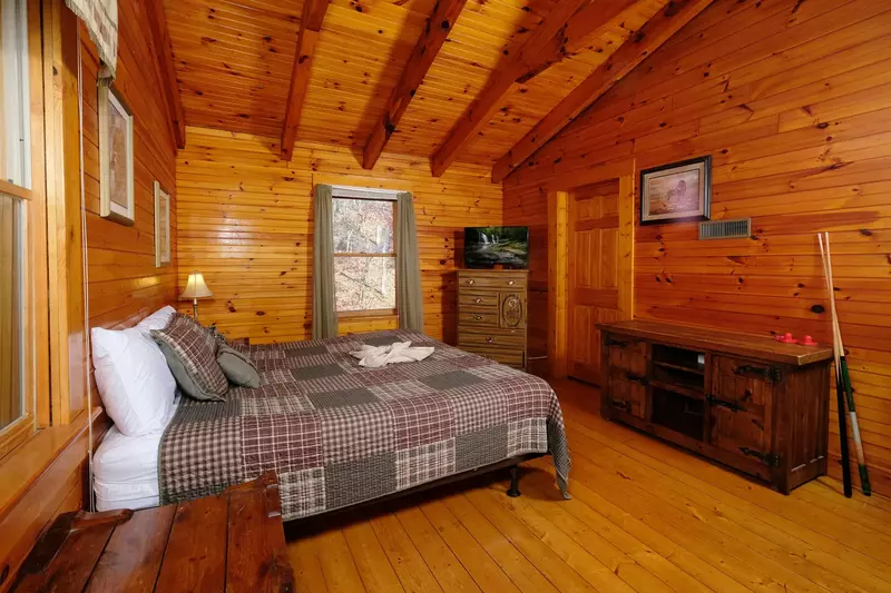 Red Fox Inn is a two-bedroom, 2.5-bathroom cabin rental with cathedral ceilings and a private location, offering everything you need for a comfortable and enjoyable stay including a game room that is sure to keep you entertained for hours on end, and conveniently situated just minutes away from all the attractions in Pigeon Forge.