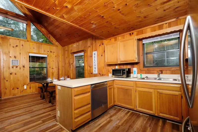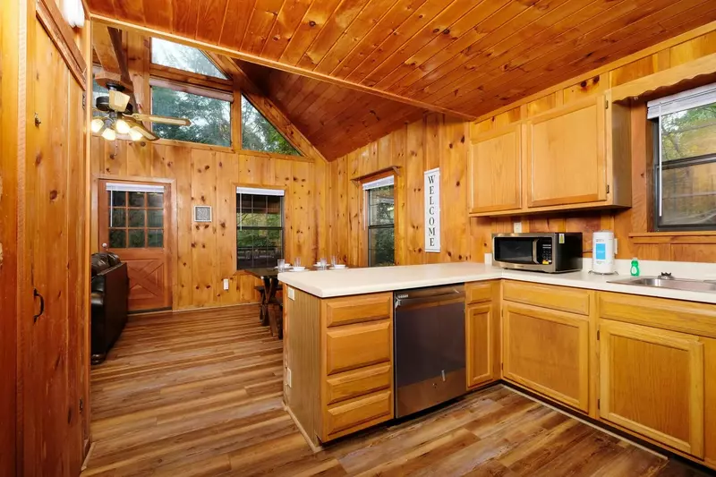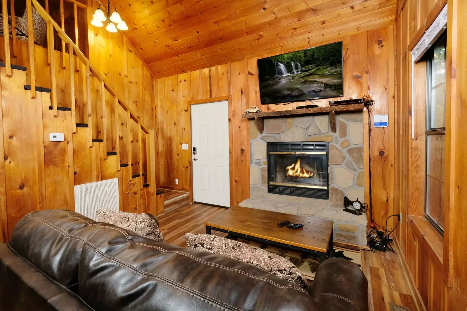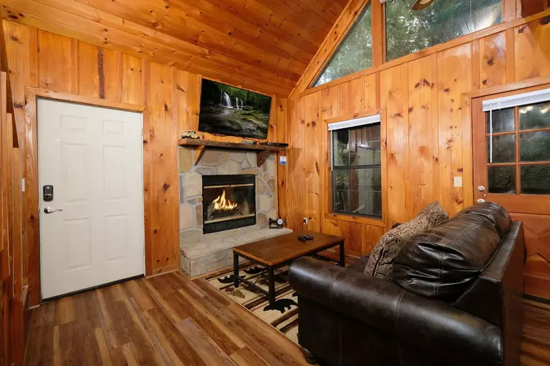River Rush is a cozy one-bedroom, two-bathroom cabin rental nestled on the banks of the Little Pigeon River, where you can luxuriate in the sound of rushing water, take advantage of all the activities available in Pigeon Forge, or fish in nearby streams.