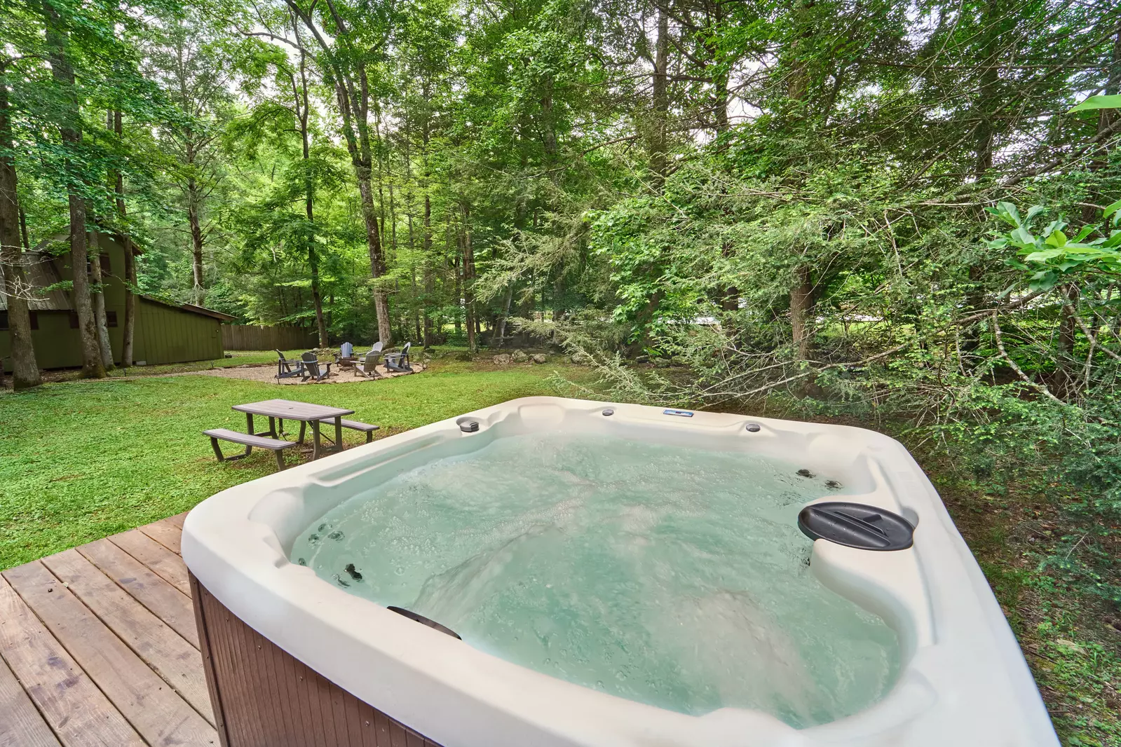 The hot tub and creek sounds are the perfect peaceful additions for an escape from chaos. The flat driveway offers parking for up to 3 vehicles and it's an easy drive on paved roads. Just 15 minutes to Downtown, 5 minutes to Golf, 6 minutes to the world class hiking in Greenbrier and 6 minutes to the Arts and Crafts Community. Amazing location.