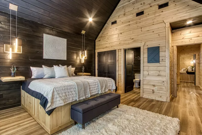 Swimmin’ on the Bluff is a beautifully designed 3-bedroom, 3-bath vacation rental cabin located just minutes from Pigeon Forge, Tennessee and the Great Smoky Mountains National Park. Perfect for family vacations, group getaways, or couples retreats, this spacious cabin offers incredible Smoky Mountain views, premium indoor and outdoor amenities, and the privacy of a peaceful bluff-top setting.