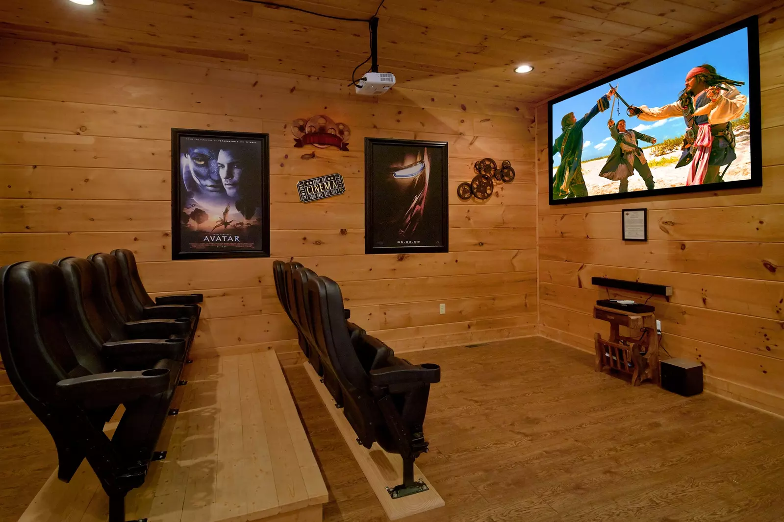 Home Theater with 9 Foot Screen and Surround Sound