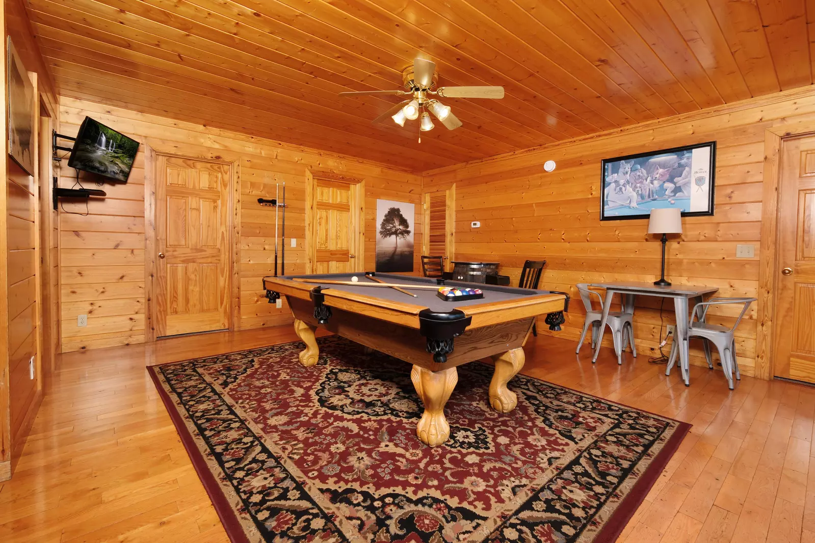 This spacious cabin provides the group with two exciting recreation rooms that are sure to keep everyone entertained for hours on end each day. The second level recreation area includes a pool table, arcade game and flat-screen tv. The third story recreation room includes a card table, and flat-screen tv.